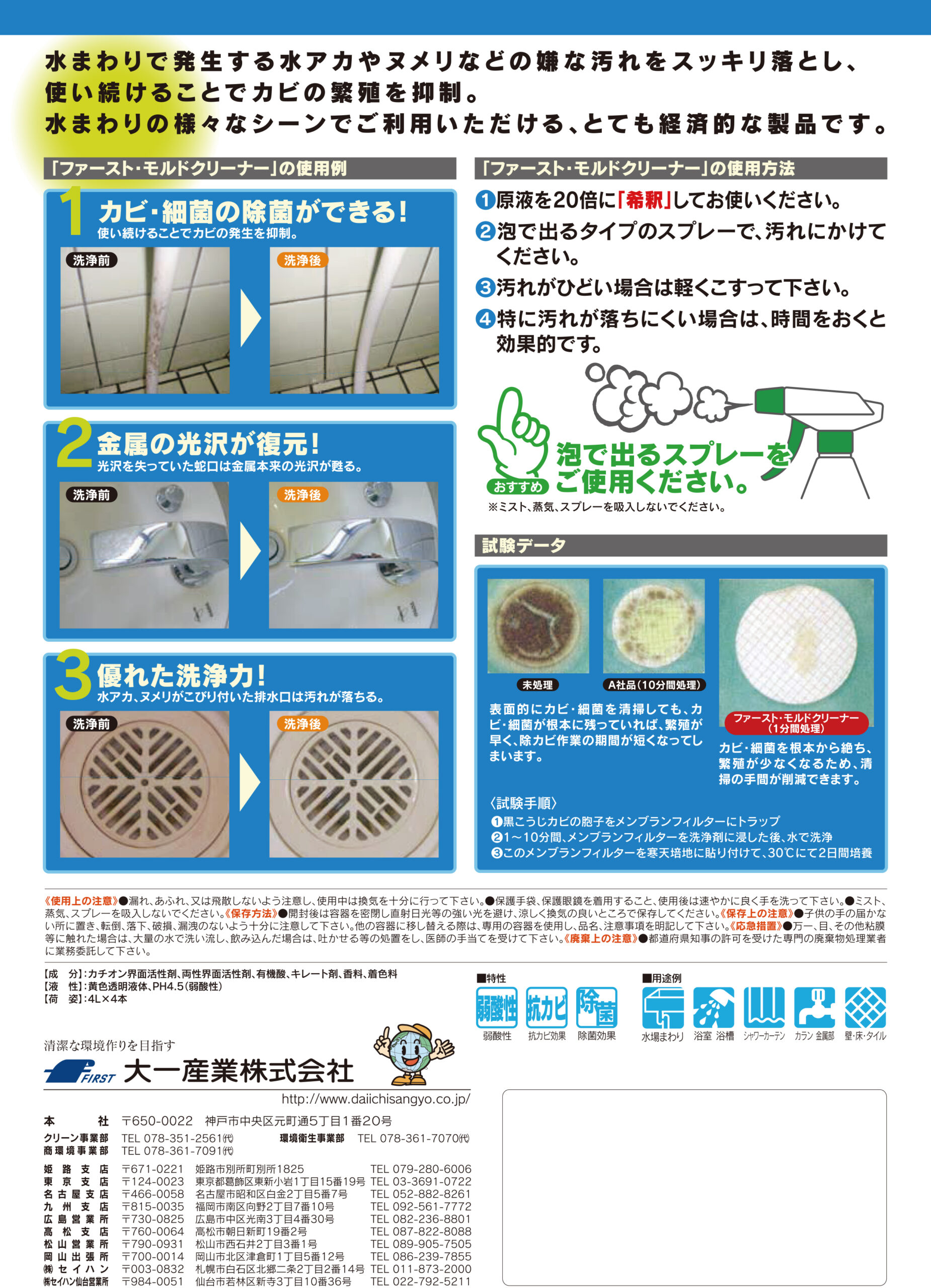 ファースト・モールドクリーナー 抗カビ除菌洗剤 4kg(大一産業)『カビ・菌の発生、根本から防いでますか?』